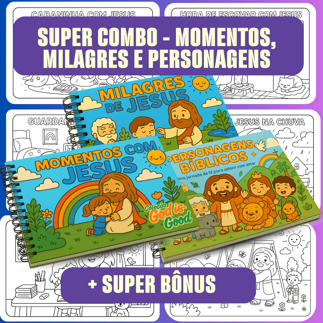 Com um combo completo para divertir e ensinar as crianças os valores cristãos, enquanto elas pintam.